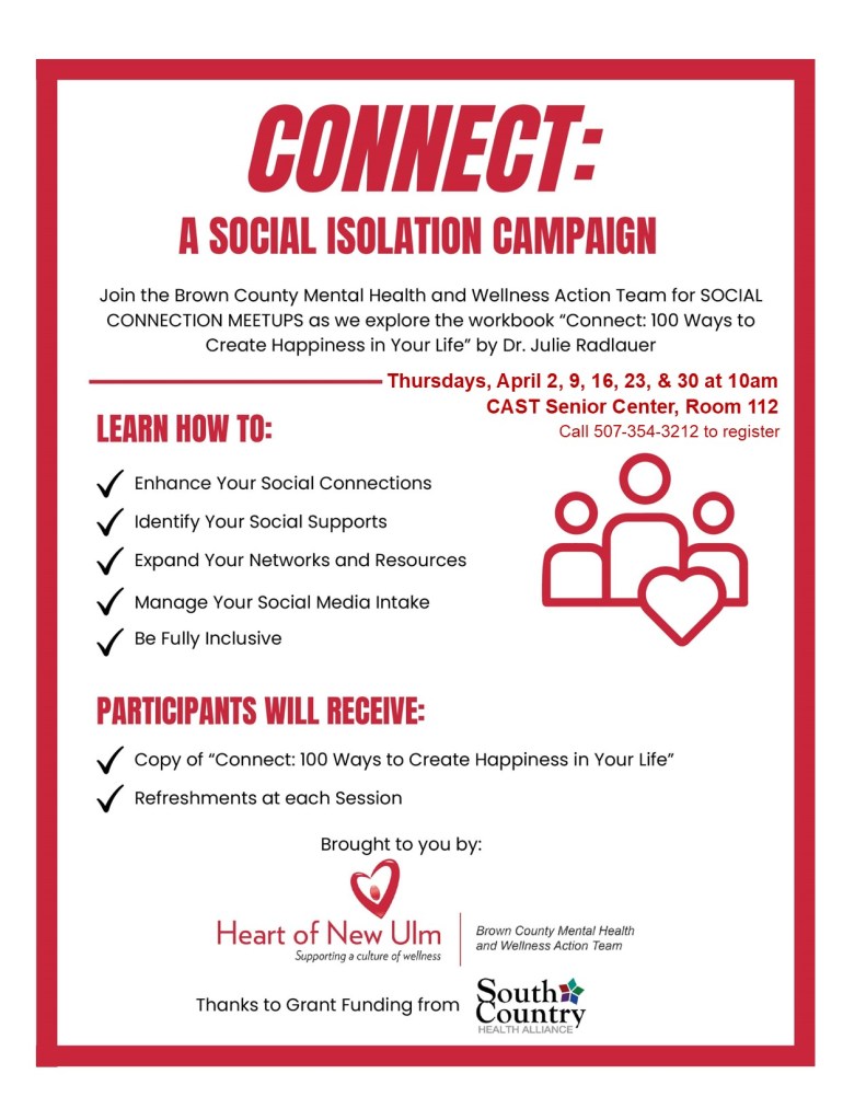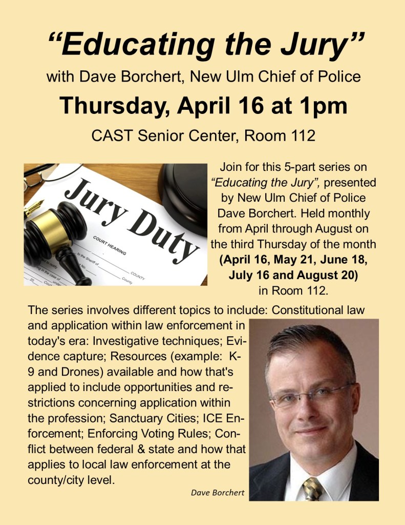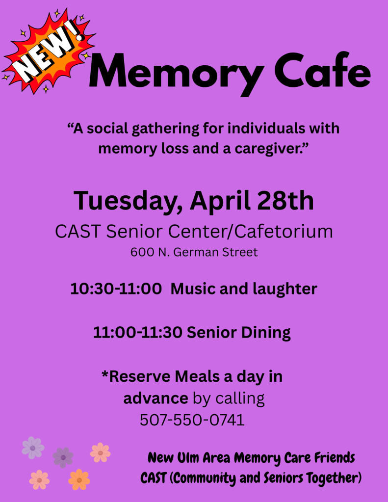 In case of inclement weather, please listen to KNUJ Radio AM 860 for CAST Senior Center closing announcements, posted on our Voicemail greeting and posted on our Facebook page.