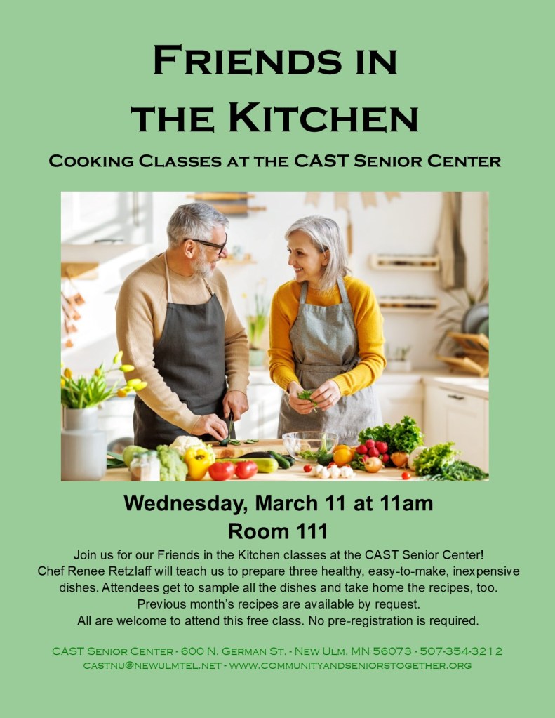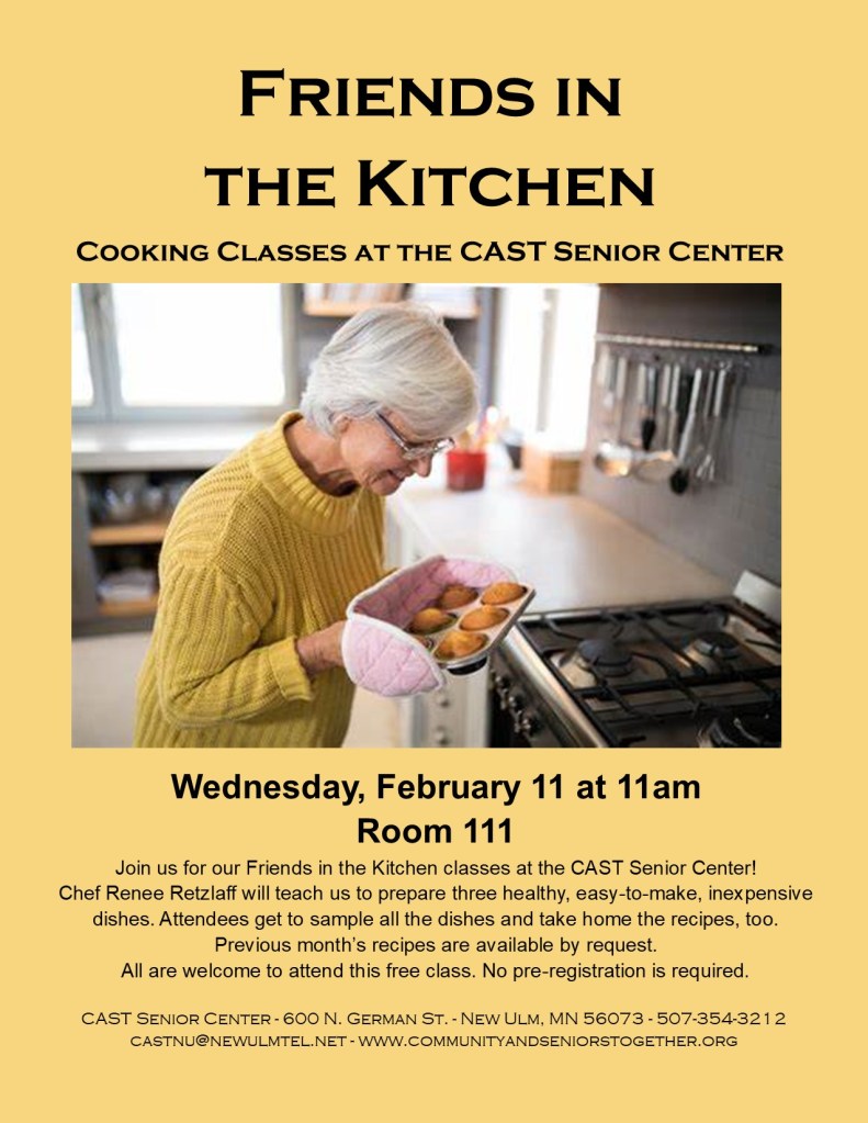 Each month’s recipes are available on our “Recipes from Friends in the Kitchen” page, which is a pulldown under the “Friends in the Kitchen” page on the Main Menu.