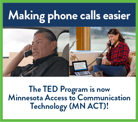 Starting August 1, 2024, the Telephone Equipment Distribution (TED) Program will change its name to Minnesota Access to Communication Technology (MN ACT). This change reflects how telecommunication access in Minnesota has grown beyond telephones. Now, we provide different kinds of devices that make it easier to use the phone. The services we offer will stay the same. MN ACT will continue to: