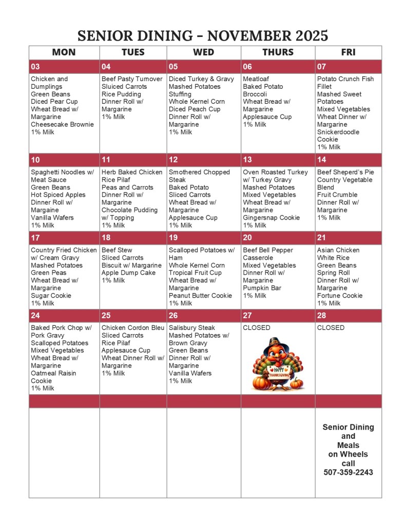 To change or cancel your Meals on Wheels reservations, call the Senior Dining office at 507-359-2243. If you get voicemail, please leave a message.